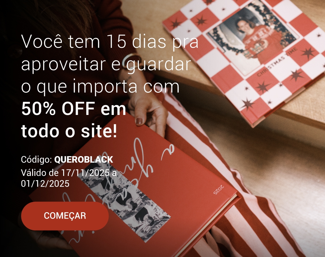 Campanha de Natal Leve 2 Vales Pré-Pagos de álbuns e Pague apenas 1 válida de 03/11 a 16/12/2025 mediante a submissão do código NATAL2EM1. Campanha não acumulável com outras ofertas em vigor.